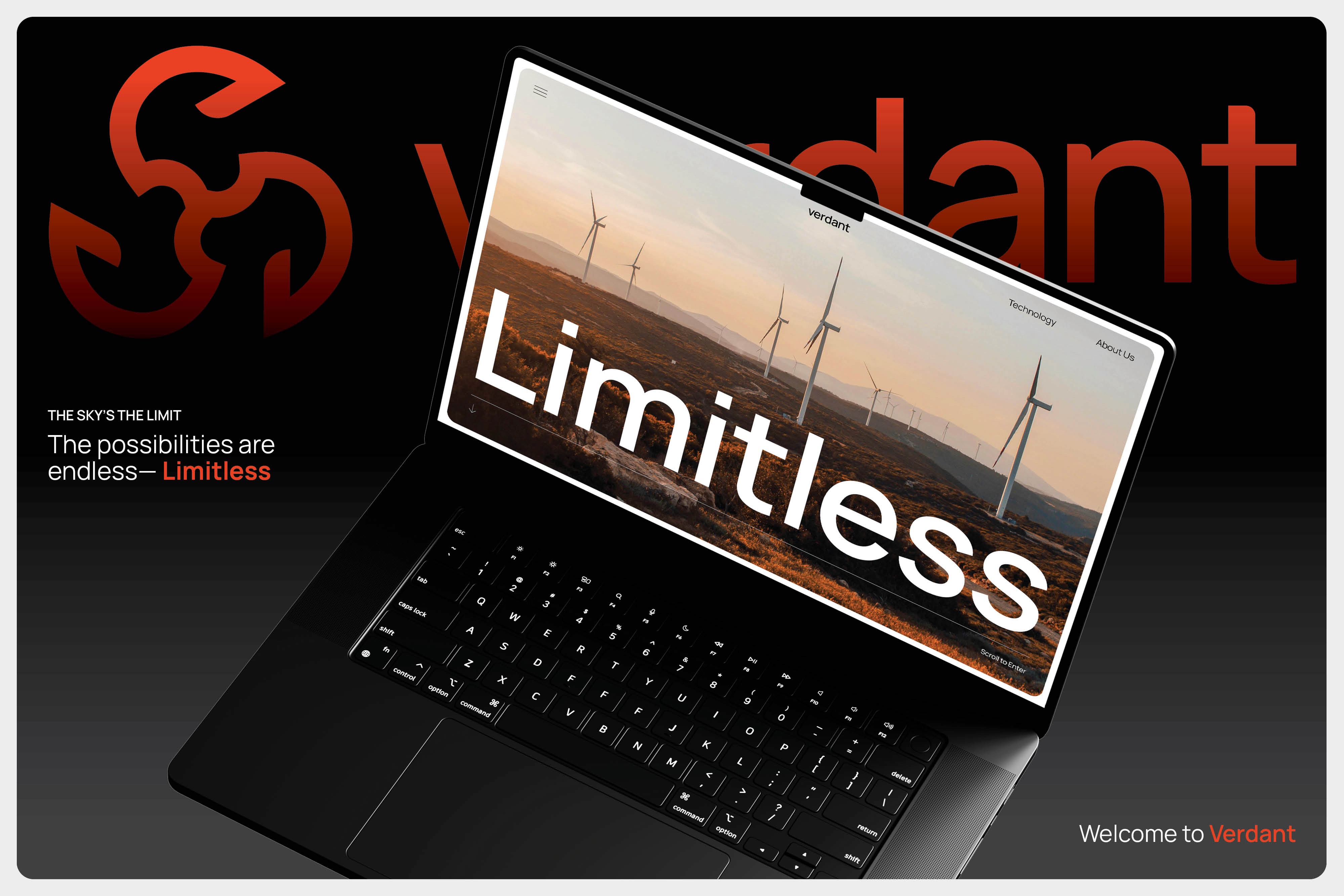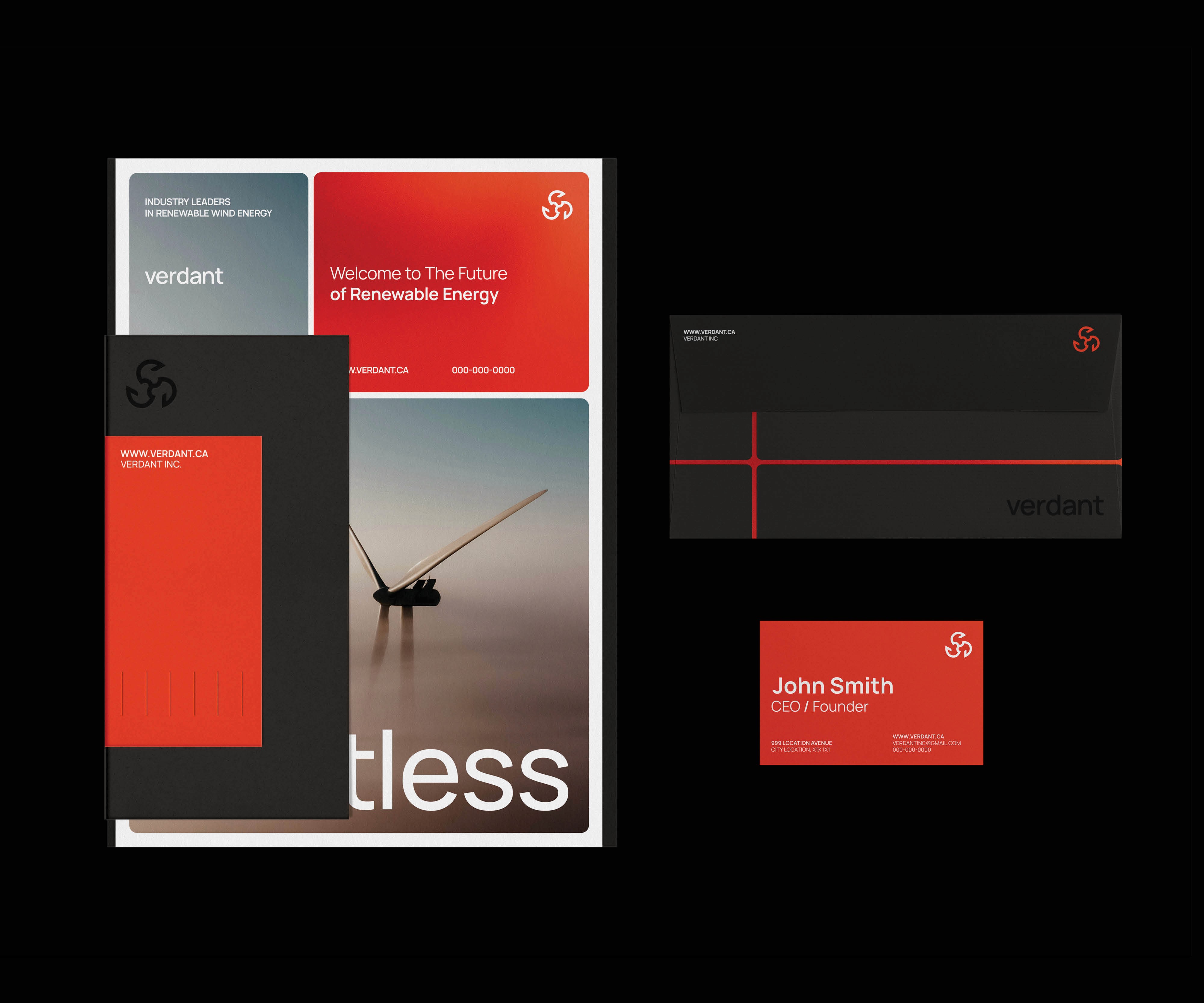 Verdant is a renewable energy brand centered on innovation, sustainability, and delivering clean power. The identity combines engineering-inspired forms with natural energy cues, reflecting precision, optimism, and performance in motion.
